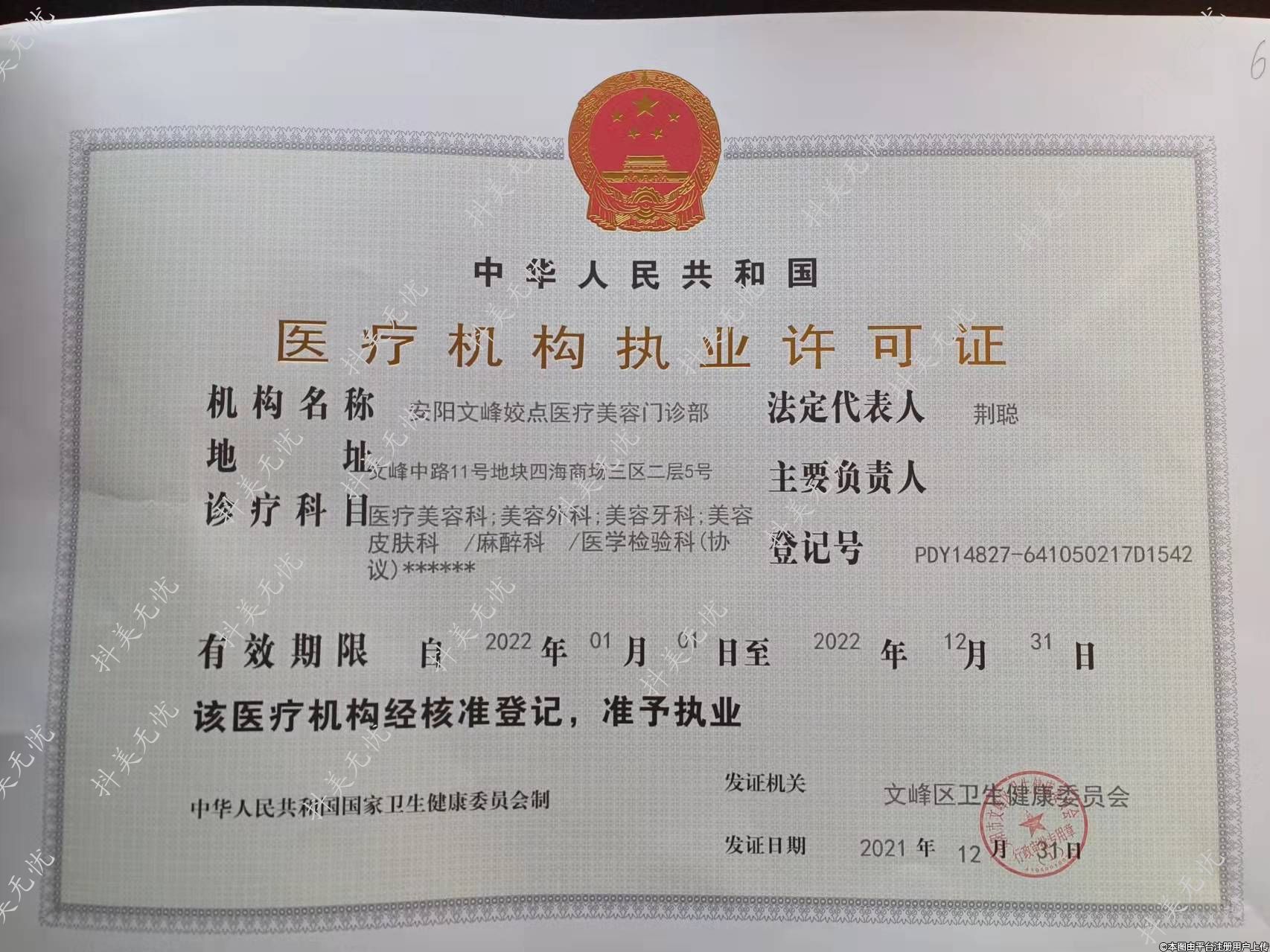 發(fā)證機關:文峰區(qū)衛(wèi)先健康委員會