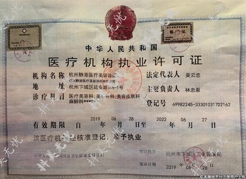 機構(gòu)名稱:杭州靜港醫(yī)療美容診所 杭州靜港醫(yī)療美容診所有限公司