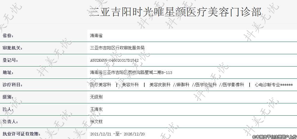 機(jī)構(gòu)名稱:三亞吉陽(yáng)時(shí)光唯星顏醫(yī)療美容門(mén)診部