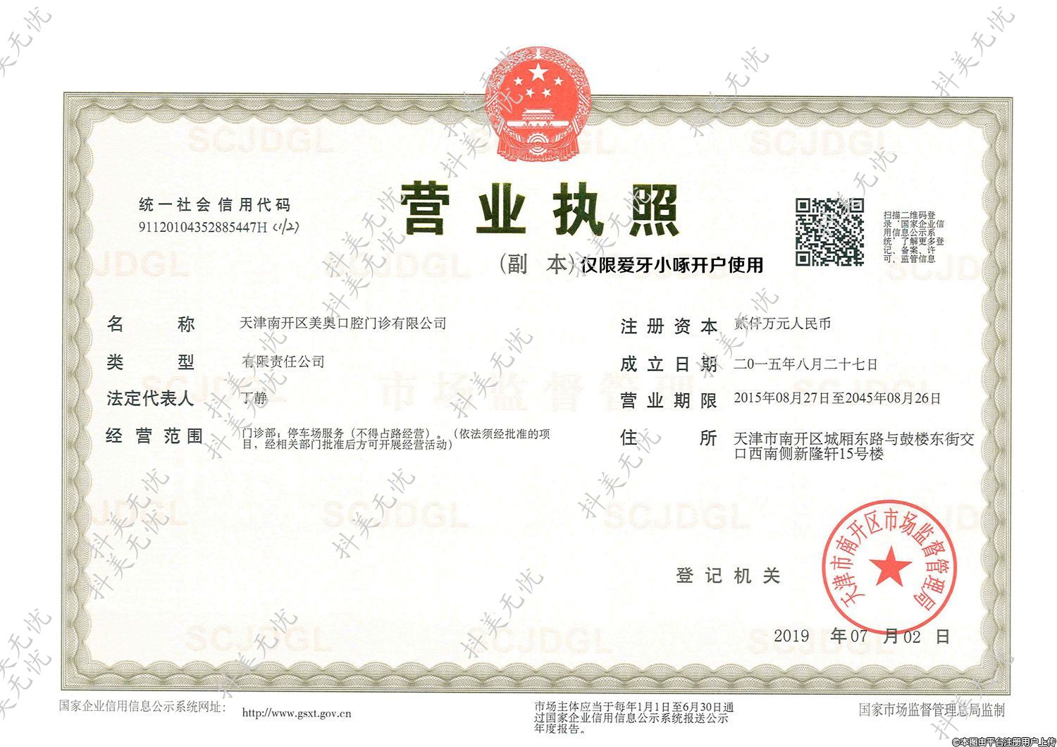 登記機(jī)關(guān):天津市南開區(qū)市場(chǎng)監(jiān)督管理局