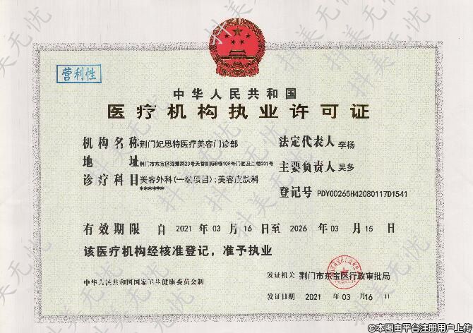 機構(gòu)名稱:荊門妃思特醫(yī)療美容門診部