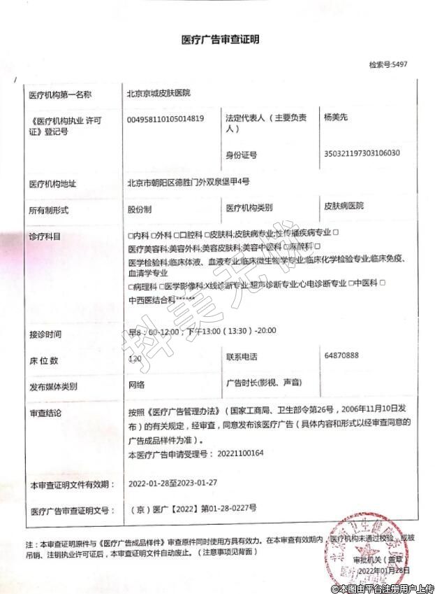 發(fā)證機關:北京市朝陽區(qū)衛(wèi)生健康委員會