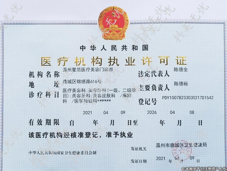 機(jī)構(gòu)名稱:溫州星范醫(yī)學(xué)美容門診部