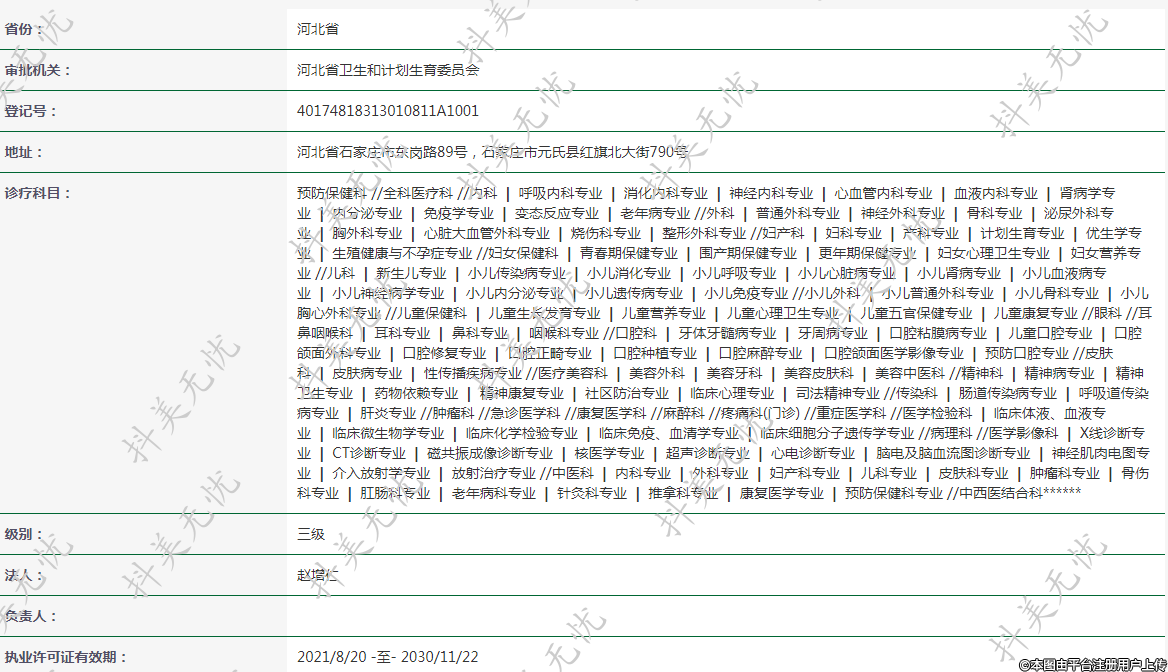 執(zhí)業(yè)許可證有效期:2021/8/20 -至- 2030/11/22
