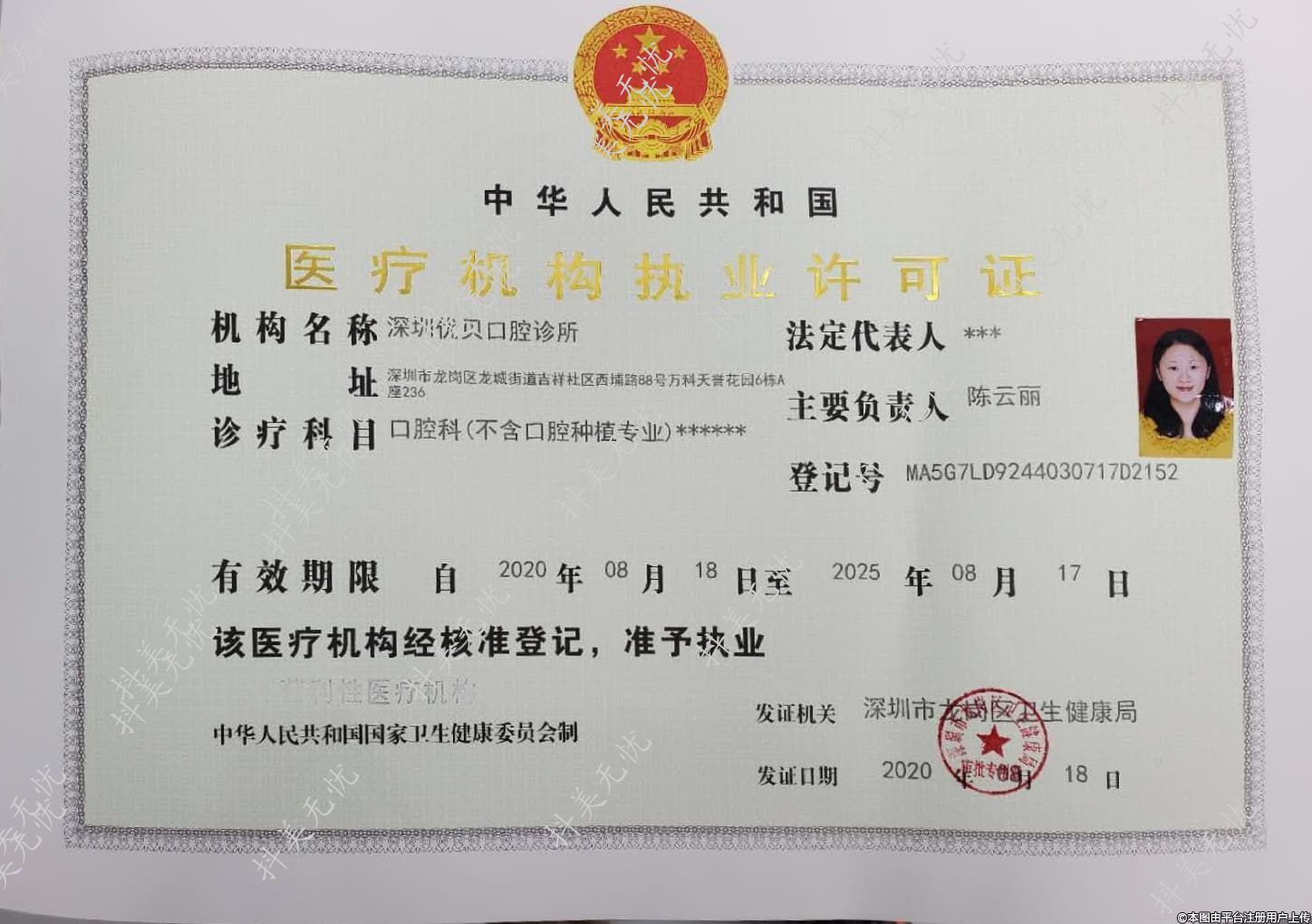 發(fā)證機(jī)關(guān):深圳市龍崗區(qū)衛(wèi)生健康局