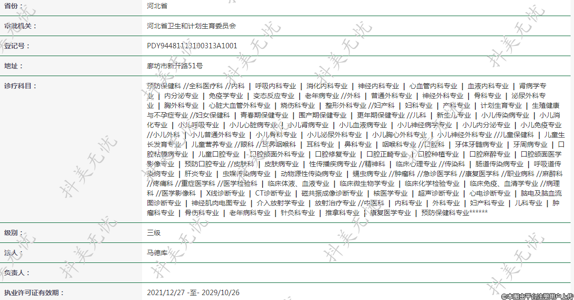 執(zhí)業(yè)許可證有效期:2021/12/27 -至- 2029/10/26