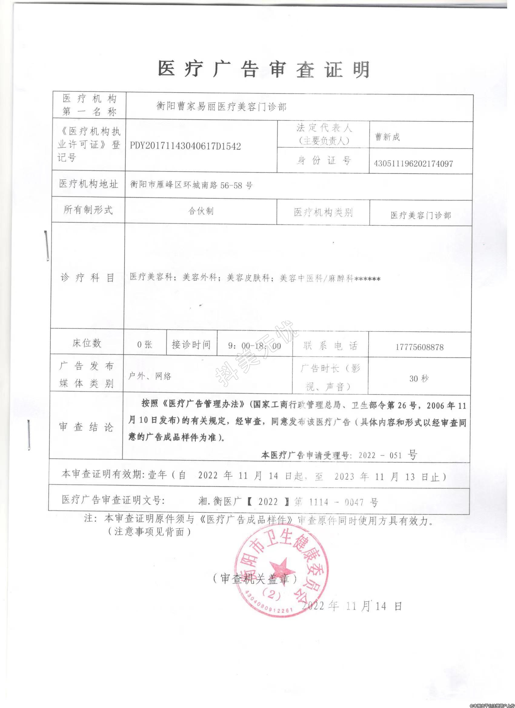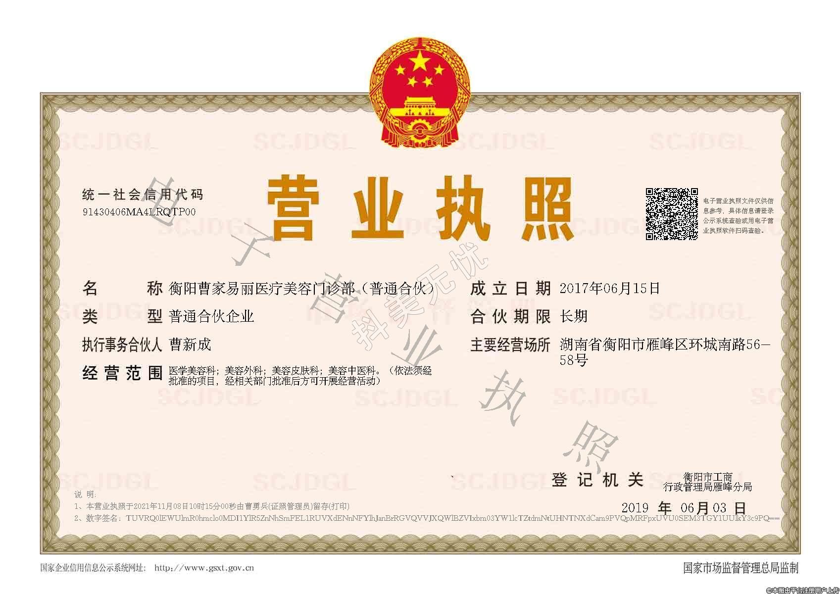 醫(yī)療機(jī)構(gòu)名稱:衡陽曹家易麗醫(yī)療美容門診部