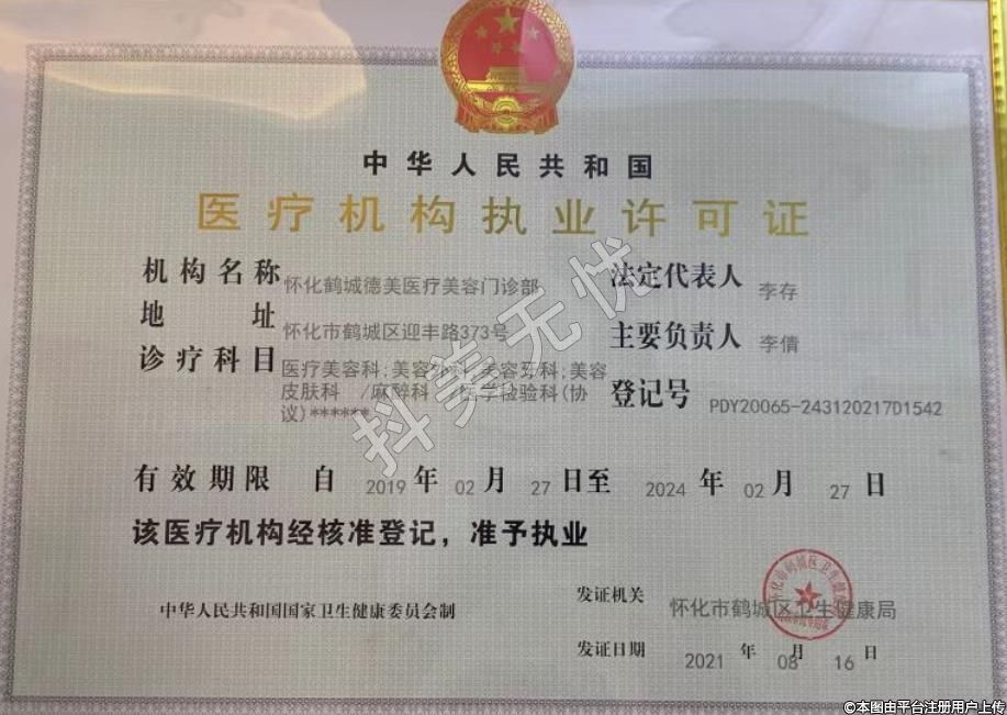 醫(yī)療機(jī)構(gòu)名稱:懷化鶴城德美醫(yī)療美容門診部