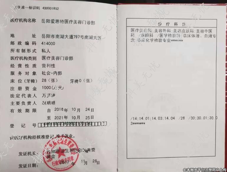 醫(yī)療機(jī)構(gòu)名稱:岳陽(yáng)愛(ài)思特醫(yī)療美容門(mén)診部