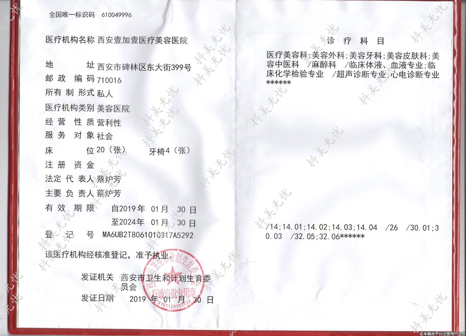 醫(yī)療機構(gòu)名稱:西安壹加壹醫(yī)療美容醫(yī)院