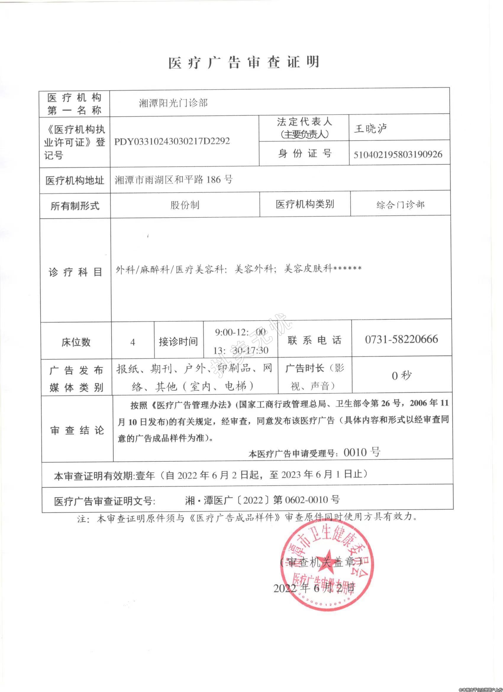 醫(yī)療機(jī)構(gòu)名稱:湘潭陽光門診部