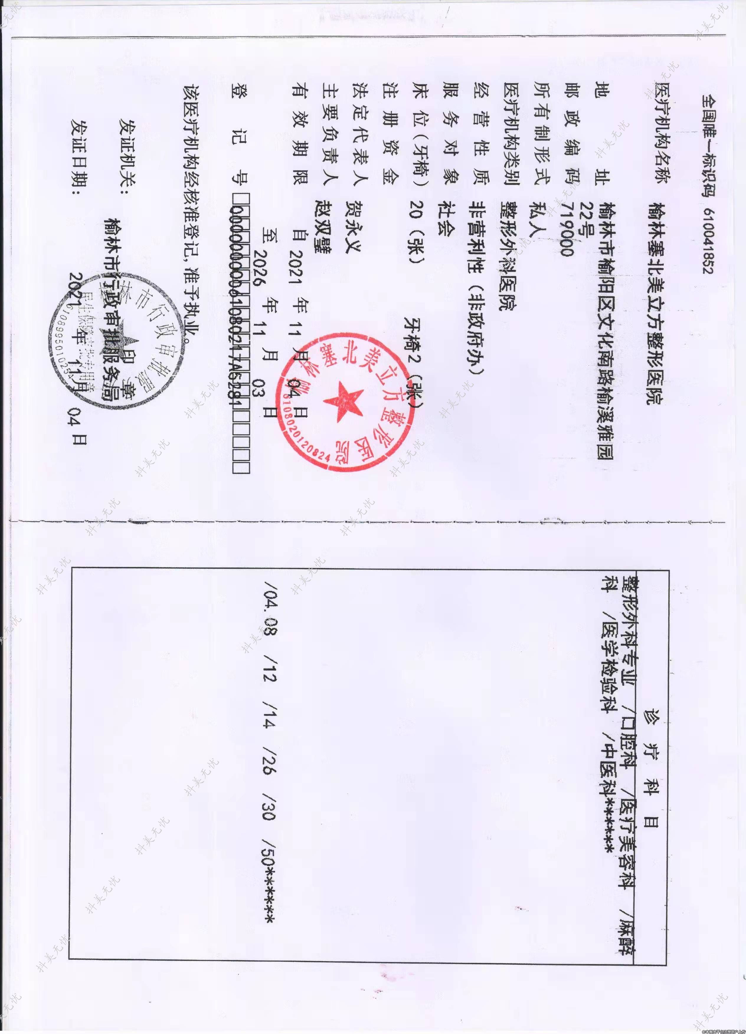 醫(yī)療機(jī)構(gòu)名稱:榆林塞北美立方整形醫(yī)院