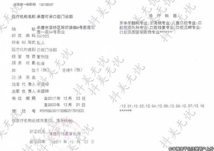 醫(yī)療機(jī)構(gòu)名稱:承德可米口腔門診部