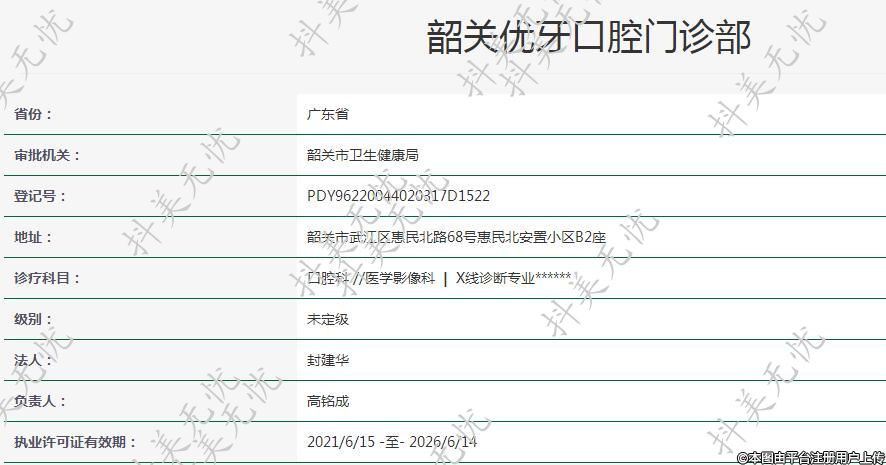 機構(gòu)名稱:韶關(guān)優(yōu)牙口腔門診部