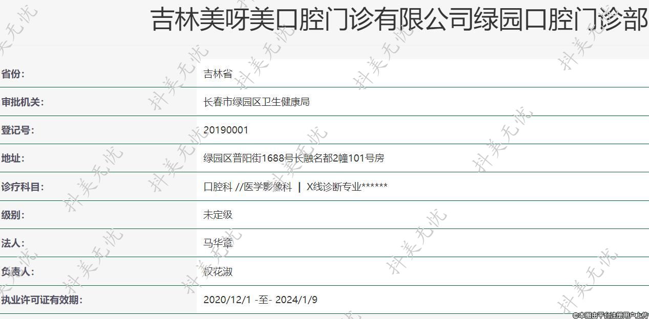 機(jī)構(gòu)名稱:吉林美呀美口腔門診有限公司