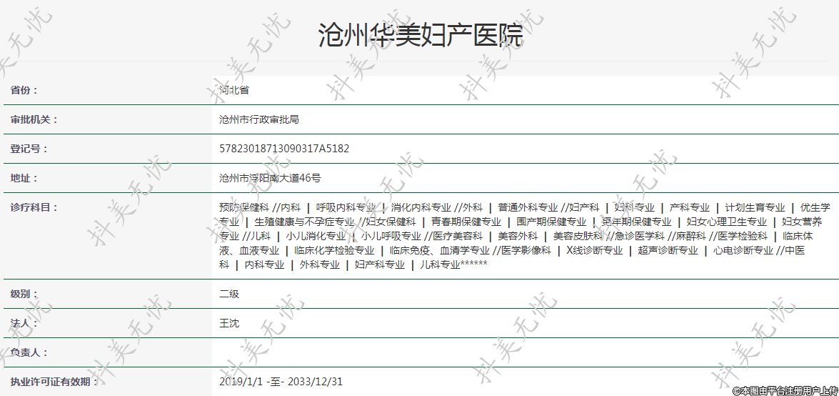 執(zhí)業(yè)許可證有效期:2019/1/1 -至- 2033/12/31