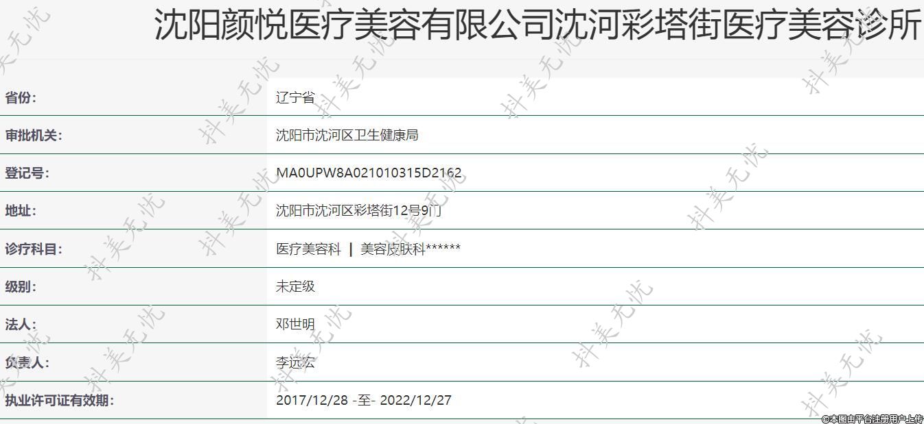 沈陽顏悅醫(yī)療美容有限公司沈河彩塔街醫(yī)療美容診所