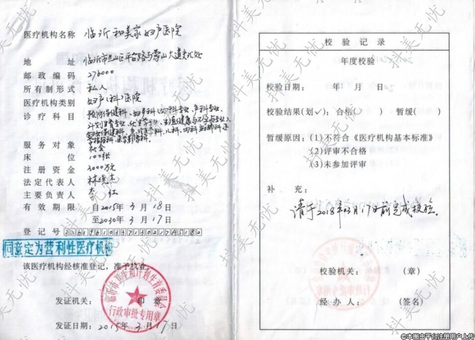 發(fā)證機關:臨沂市衛(wèi)生和計劃生育委員會
