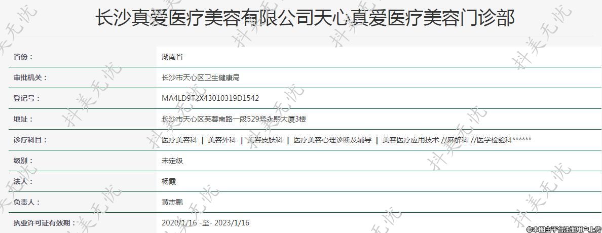 長(zhǎng)沙真愛醫(yī)療美容有限公司天心真愛醫(yī)療美容門診部