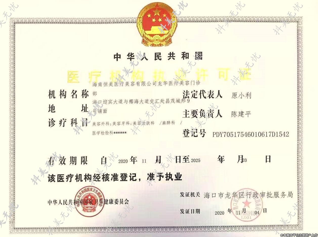 機構名稱:海南恒美醫(yī)療美容有限公司龍華醫(yī)療美容門診部