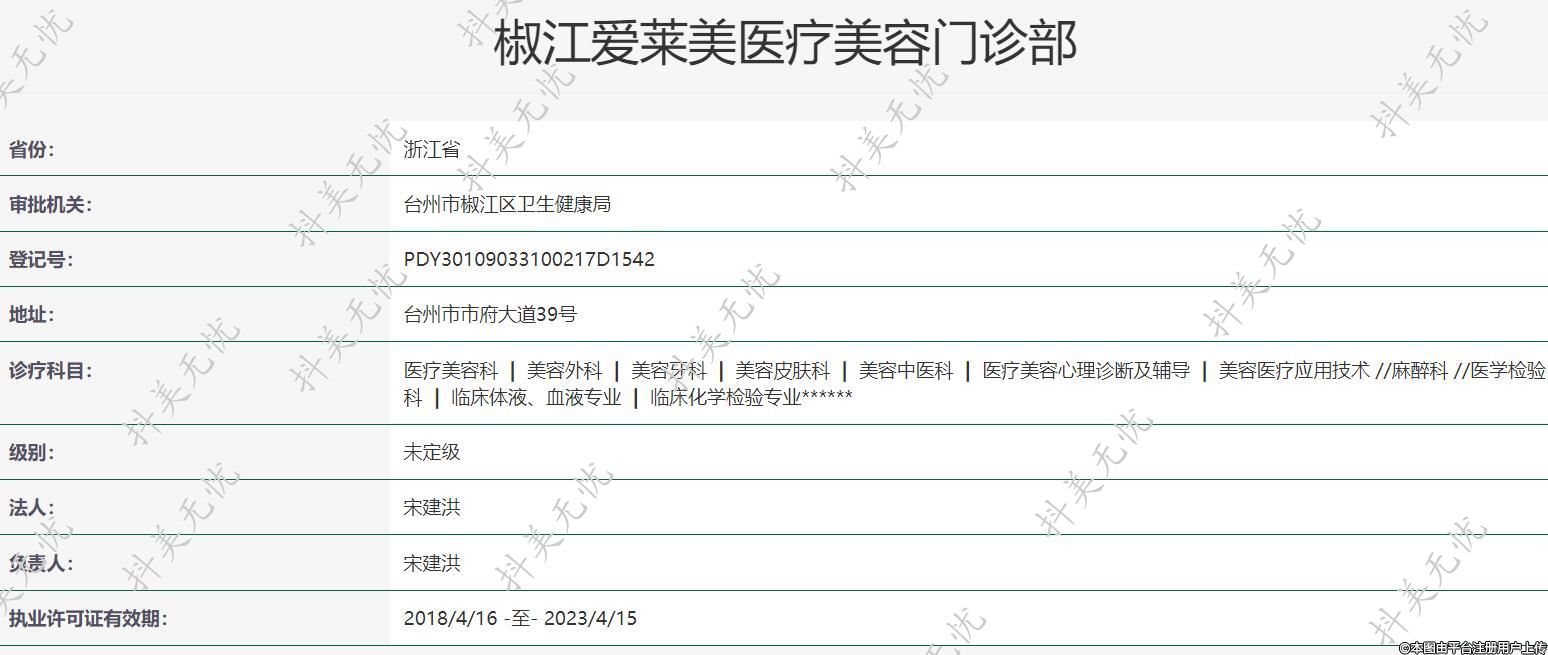 椒江愛(ài)萊美醫(yī)療美容門(mén)診部