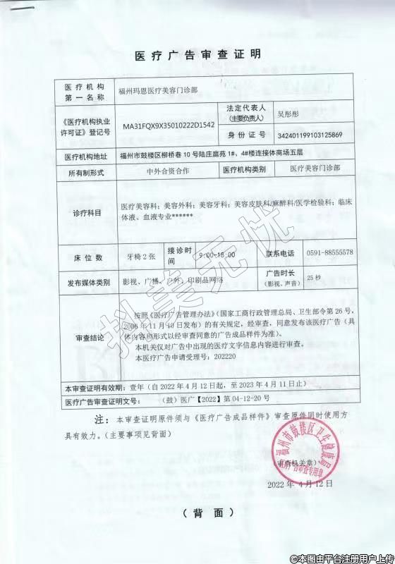 機(jī)構(gòu)名稱:福州瑪恩醫(yī)療美容門診部