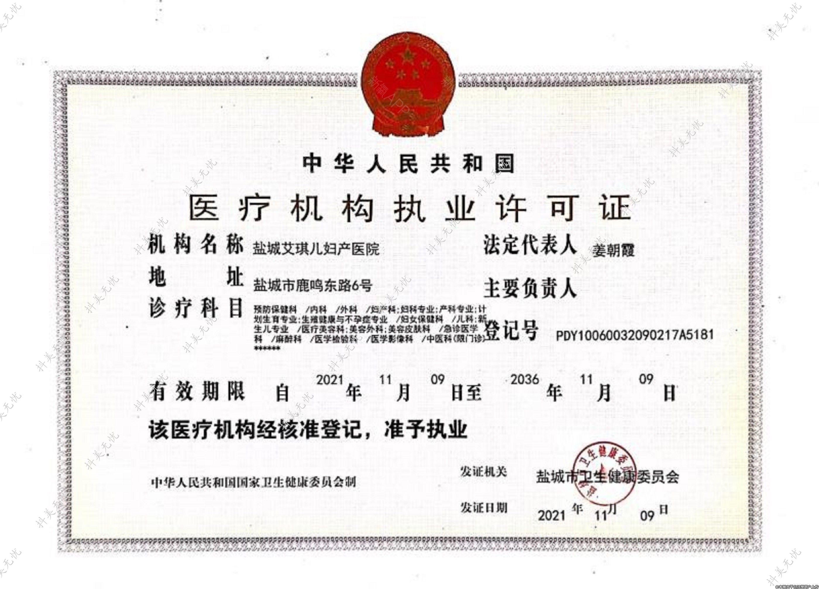 發(fā)證機(jī)關(guān):鹽城市衛(wèi)生健康委員會(huì)