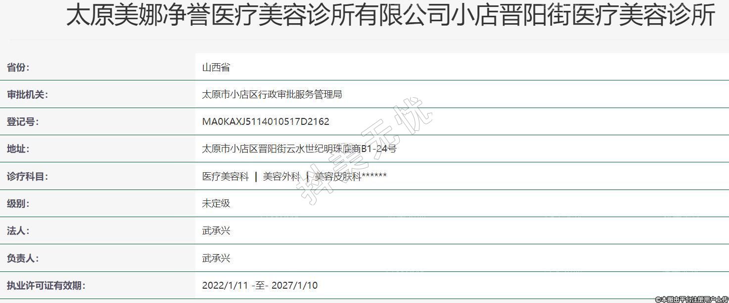 太原美娜凈譽醫(yī)療美容診所有限公司小店晉陽街醫(yī)療美容診所