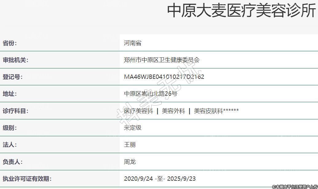 鄭州大麥醫(yī)療美容成立于2019-06-04,地址:中原區(qū)嵩山北路26號,診療科目:醫(yī)療美容科 | 美容外科 | 美容皮膚科******