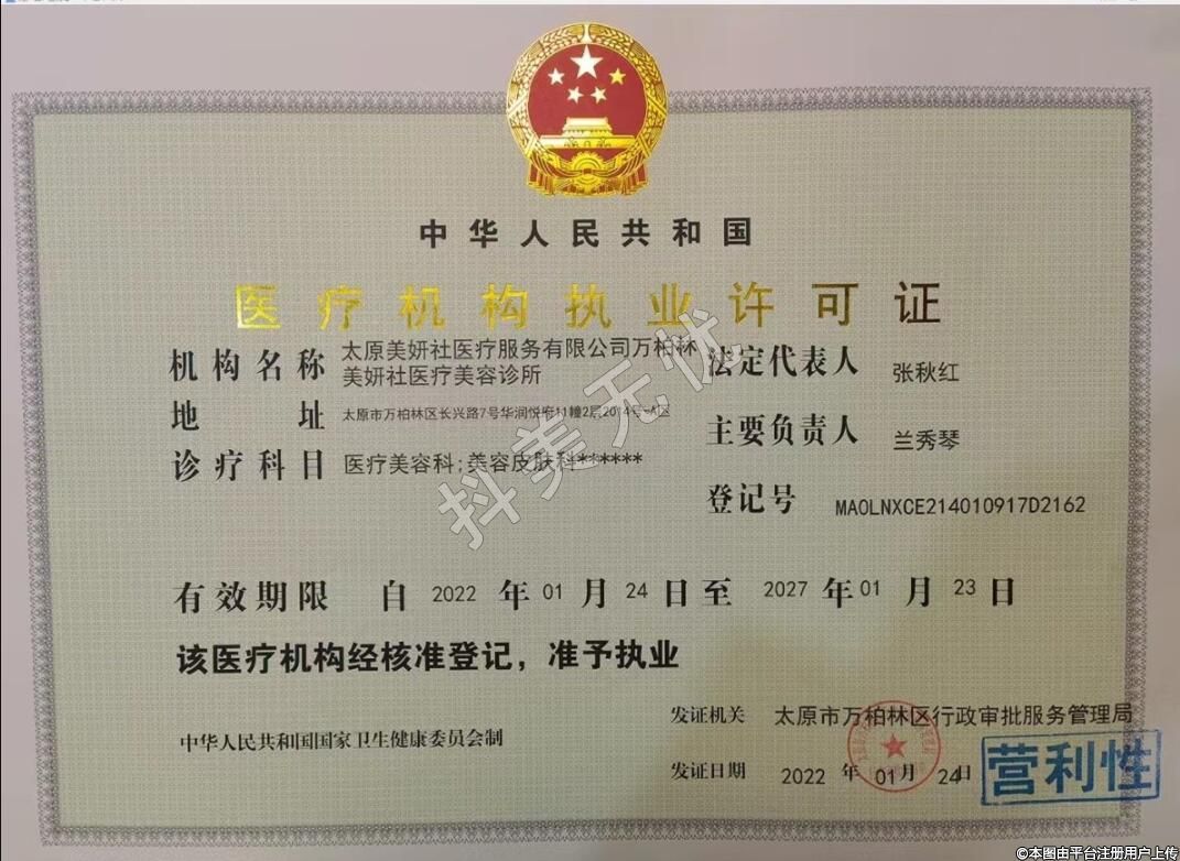 機(jī)構(gòu)名稱:太原美妍社醫(yī)療服務(wù)有限公司萬柏林美妍社醫(yī)療美容診所