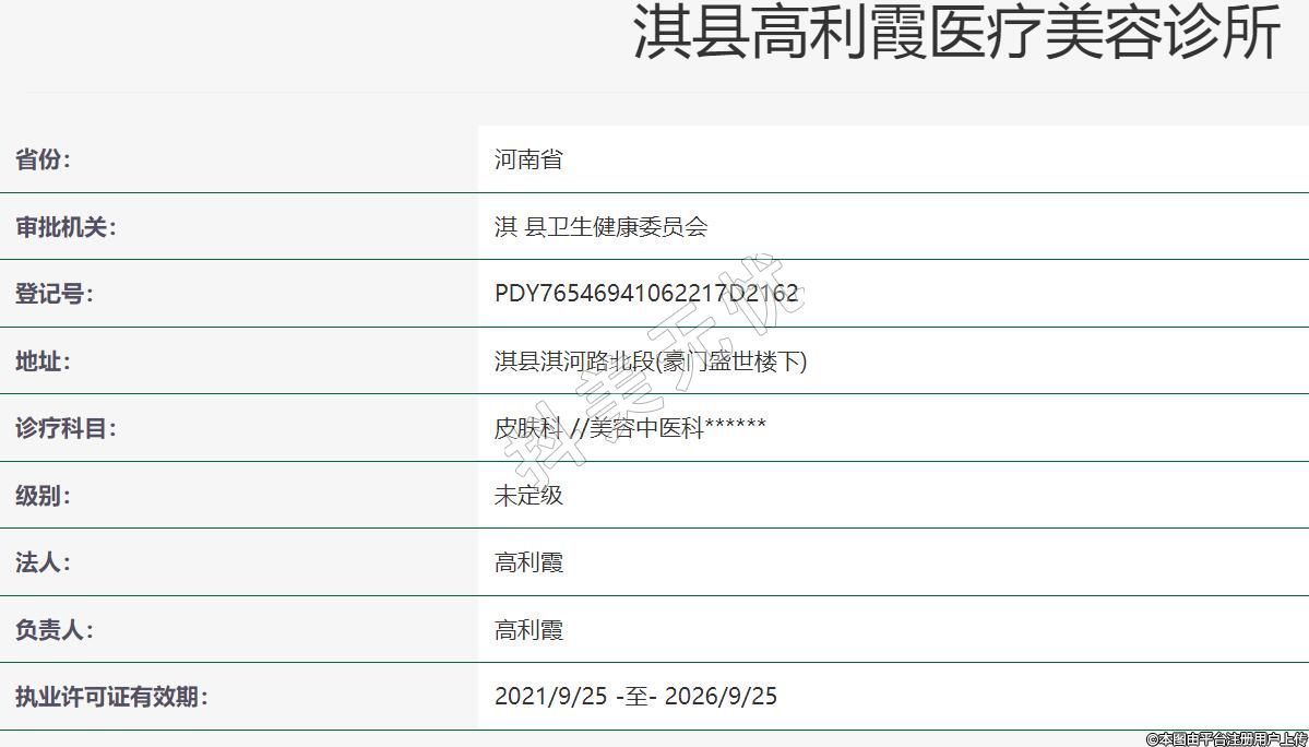 淇縣高利霞醫(yī)療美容診所位于河南省鶴壁巿淇縣淇河路北段(豪門盛世樓下),成立于2016-04-26,科室范圍為皮膚科,美容中醫(yī)科。