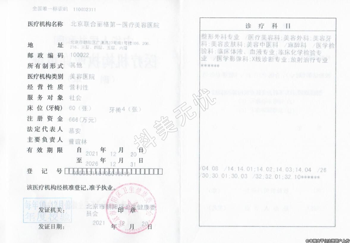 醫(yī)療機(jī)構(gòu)名稱:北京聯(lián)合麗格第一醫(yī)療美容醫(yī)院