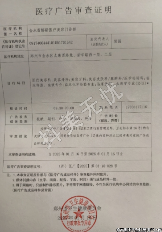 發(fā)證機關:鄭州市金水區(qū)衛(wèi)生健康委員會