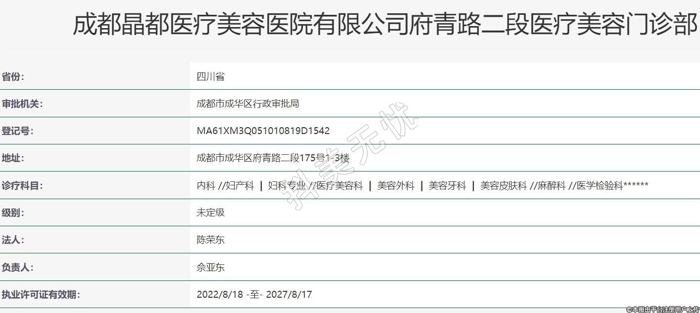 成都晶都醫(yī)療美容醫(yī)院有限公司府青路二段醫(yī)療美容門診部
