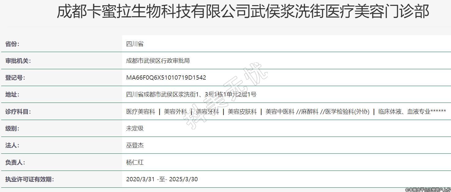 成都卡蜜拉生物科技有限公司武侯漿洗街醫(yī)療美容門診部
