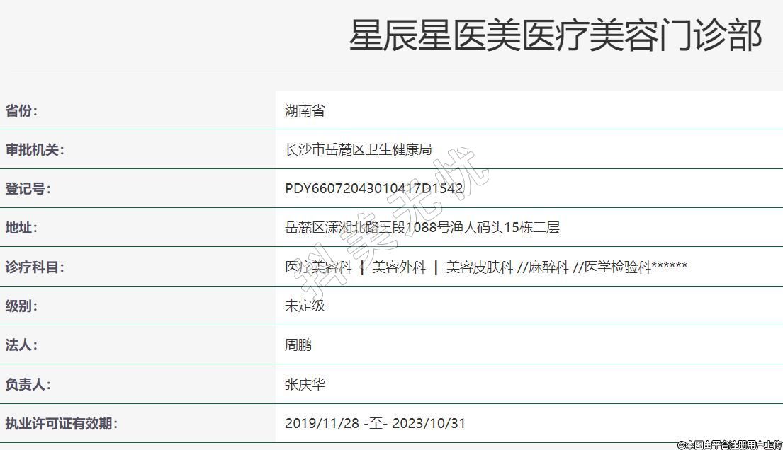 長沙星辰星醫(yī)美醫(yī)療美容2019年06月20日成立,地址:岳麓區(qū)瀟湘北路三段1088號漁人碼頭15棟二層,診療科目:醫(yī)療美容科 | 美容外科 | 美容皮膚科 //麻醉科 //醫(yī)學(xué)檢驗(yàn)科******