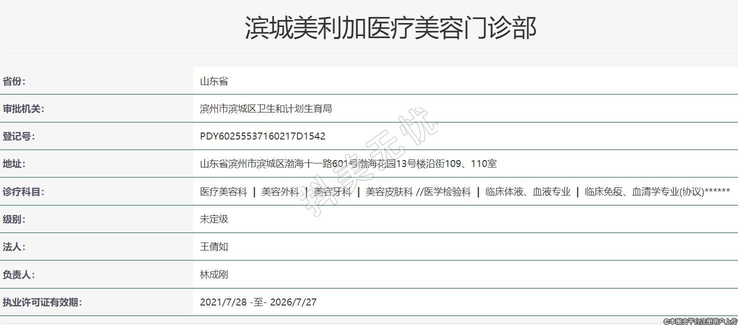 濱州美利加醫(yī)療美容2021年04月30日成立,診療科目:醫(yī)療美容科 | 美容外科 | 美容牙科 | 美容皮膚科 //醫(yī)學檢驗科 | 臨床體液、血液專業(yè) | 臨床免疫、血清學專業(yè)(協(xié)議)******