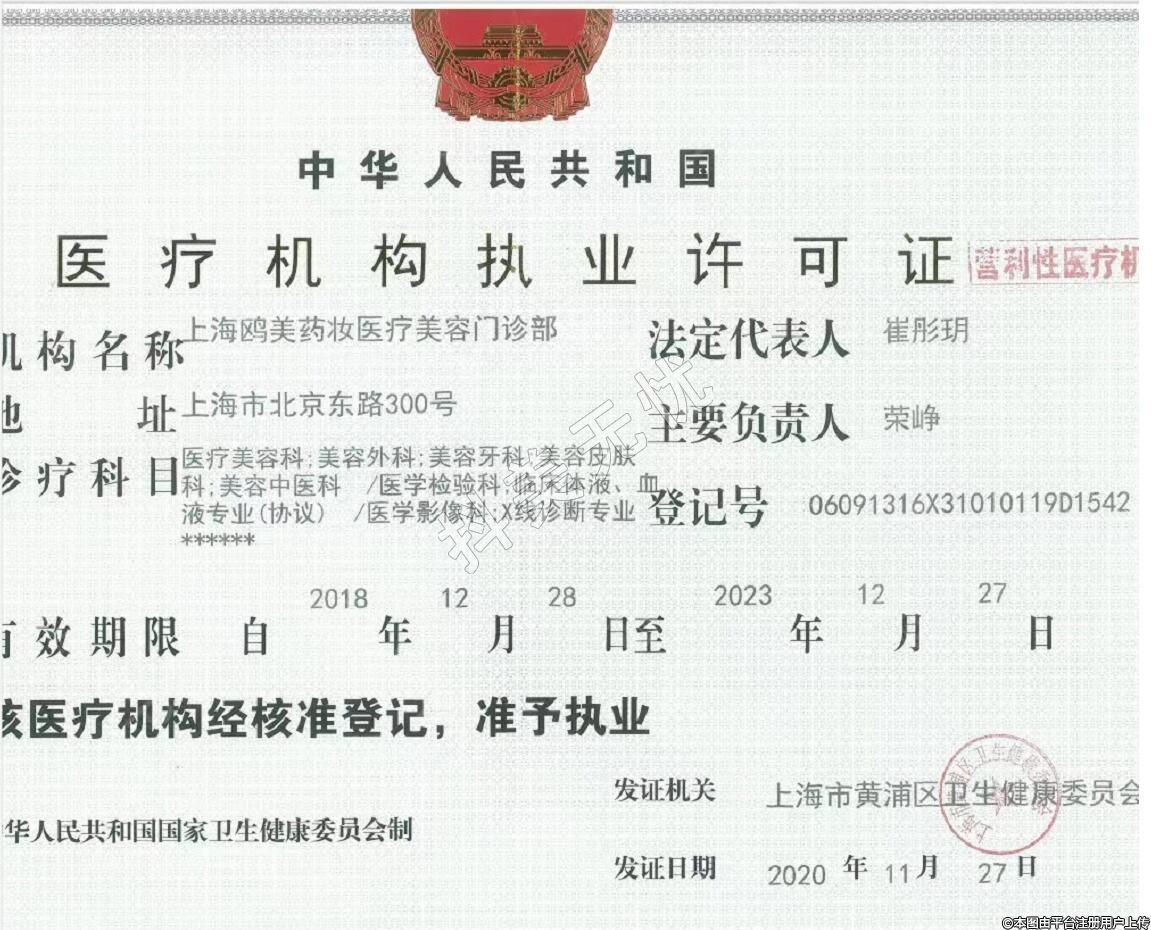 發(fā)證機關:上海市黃浦區(qū)衛(wèi)生健康委員會