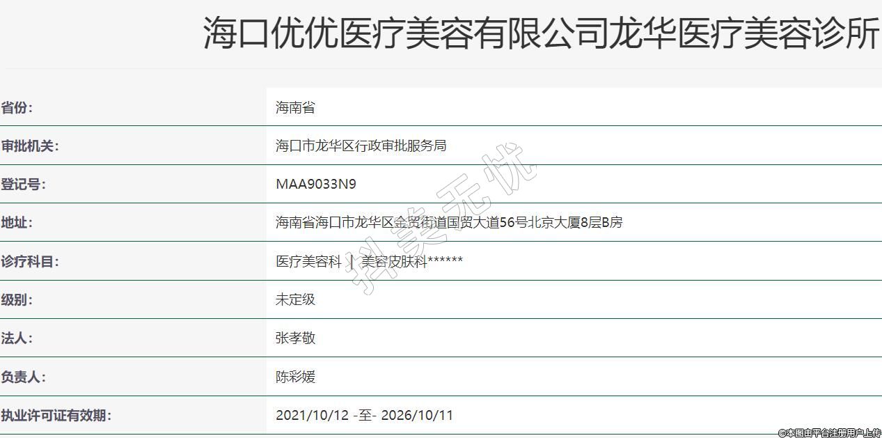 海口優(yōu)優(yōu)醫(yī)療美容有限公司成立于2021年08月03日,注冊地位于海南省??谑旋埲A區(qū)國貿(mào)路56號北京大廈8樓B,法定代表人為張孝敬。經(jīng)營范圍包括許可項目:醫(yī)療美容服務(wù);生活美容服務(wù)(依法須經(jīng)批準(zhǔn)的項目,經(jīng)相關(guān)部門批準(zhǔn)后方可開展經(jīng)營活動)