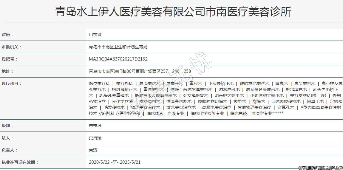 青島水上伊人醫(yī)療美容有限公司市南醫(yī)療美容診所