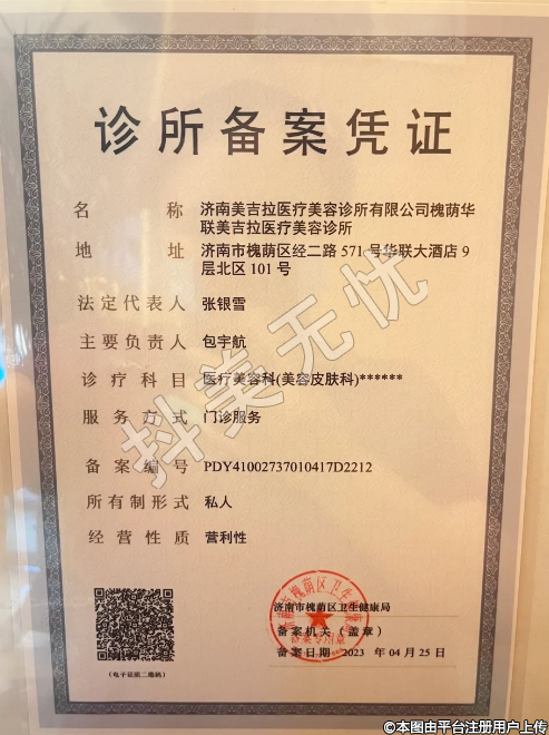 名稱:濟南美吉拉醫(yī)療美容診所有限公司槐蔭華聯(lián)美吉拉醫(yī)療美容診所