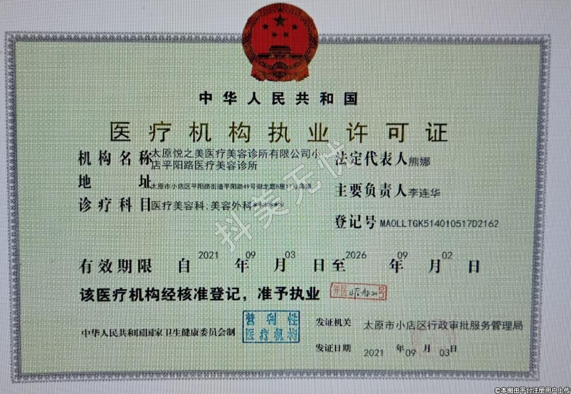 機(jī)構(gòu)名稱:太原悅之美醫(yī)療美容診所有限公司小店平陽(yáng)路醫(yī)療美容診所