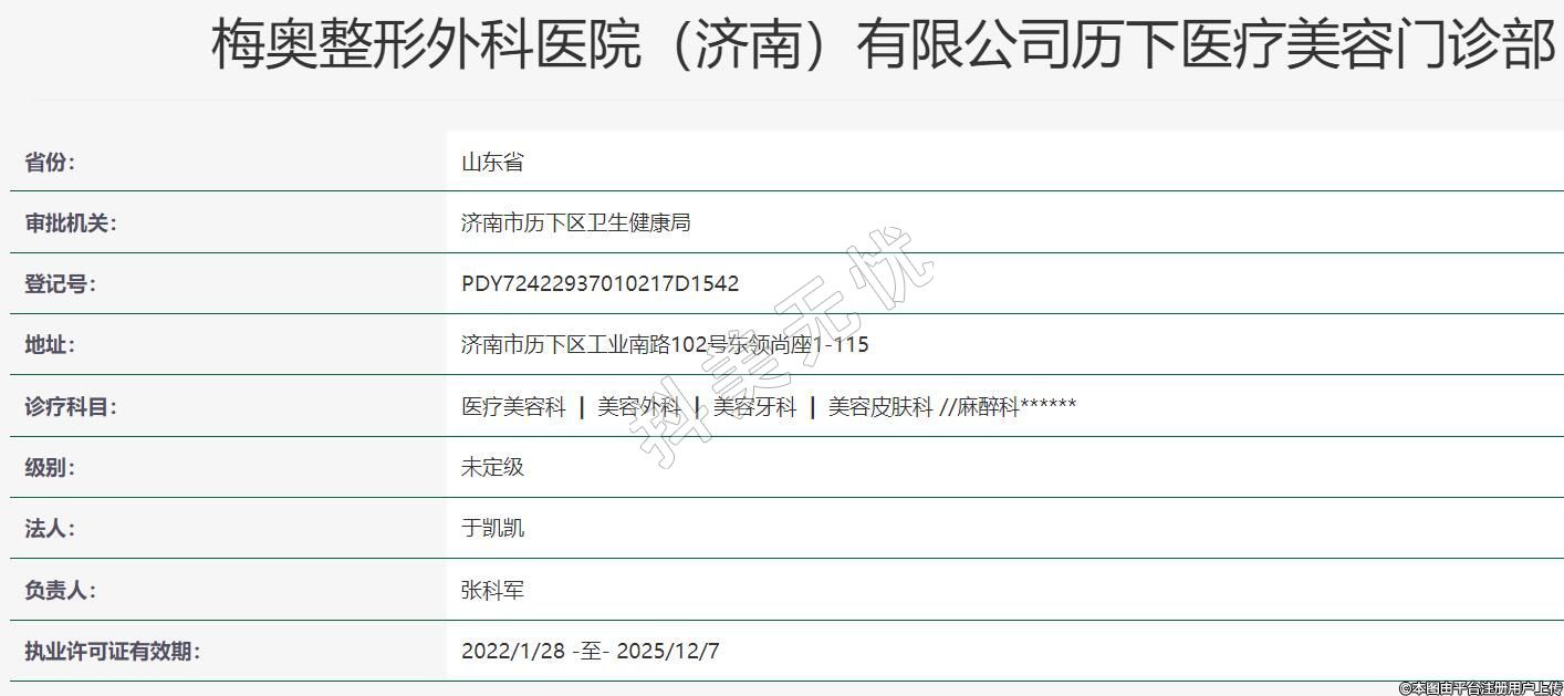 梅奧整形外科醫(yī)院(濟南)有限公司歷下醫(yī)療美容門診部