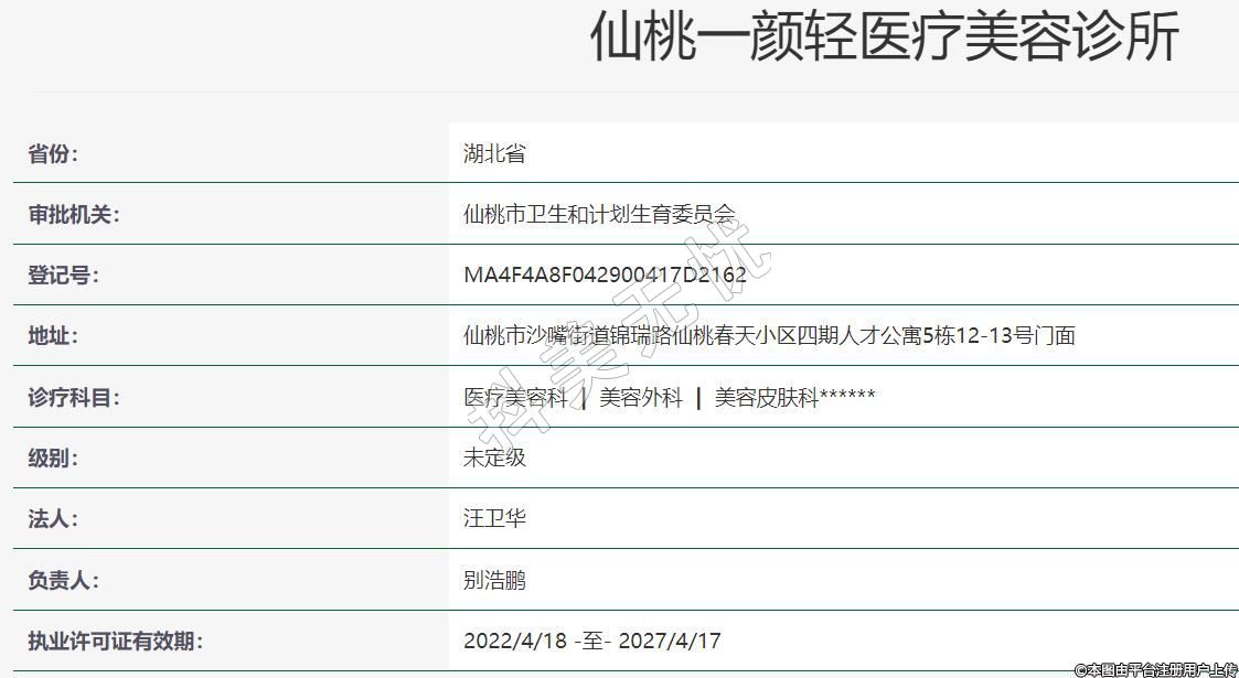 仙桃一顏輕醫(yī)療美容2021年11月08日成立,地址:仙桃市沙嘴街道錦瑞路仙桃春天小區(qū)四期人才公寓5棟12-13號門面,診療科目:醫(yī)療美容科 | 美容外科 | 美容皮膚科******
