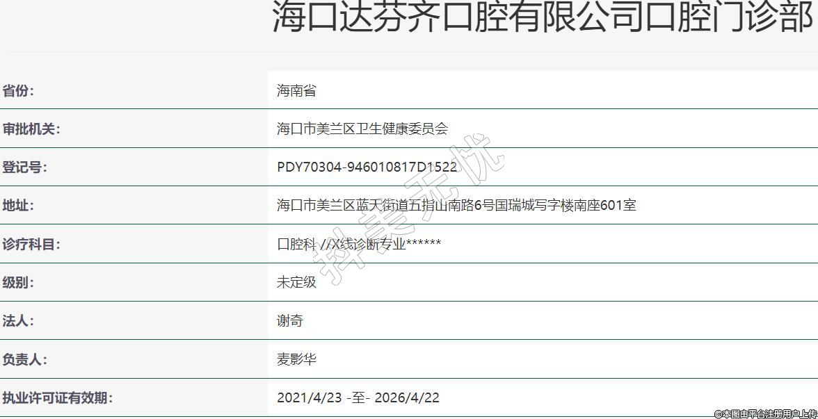 審批機關(guān):海口市美蘭區(qū)衛(wèi)生健康委員會