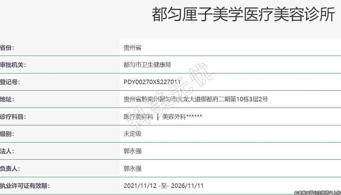 都勻厘子美學(xué)醫(yī)療美容地址:貴州省黔南州都勻市大龍大道御都府二期第10棟3層2號,診療科目:醫(yī)療美容科 | 美容外科******