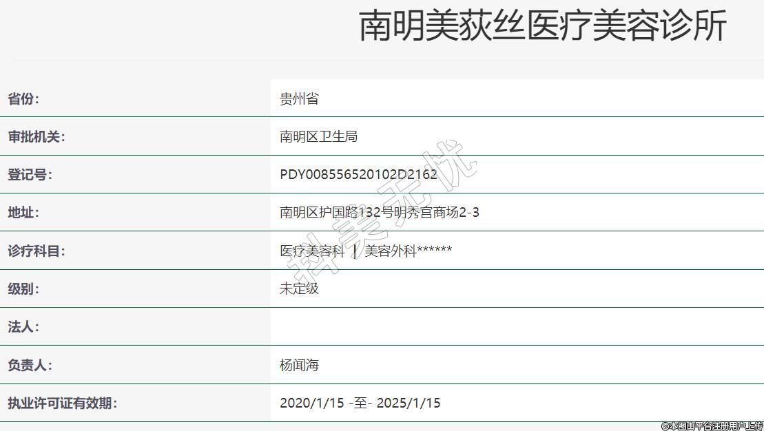 貴陽美荻絲醫(yī)療美容地址:南明區(qū)護國路132號明秀宮商場2-3,診療科目:醫(yī)療美容科 | 美容外科******