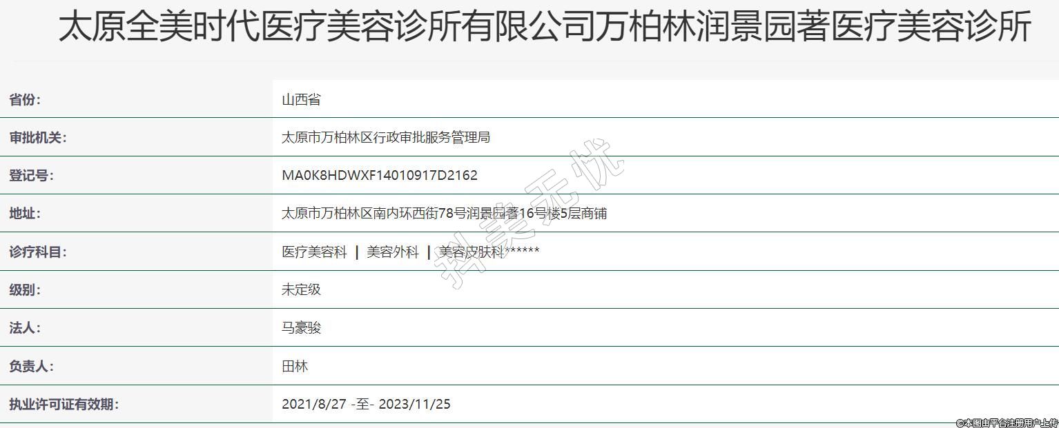 太原全美時(shí)代醫(yī)療美容診所有限公司萬柏林潤景園著醫(yī)療美容診所