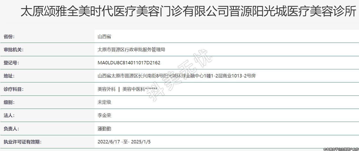 太原頌雅全美時代醫(yī)療美容門診有限公司晉源陽光城醫(yī)療美容診所