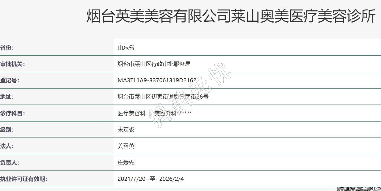 煙臺英美美容有限公司萊山奧美醫(yī)療美容診所